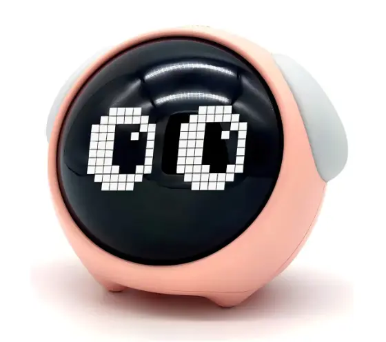 Este despertador destaca por su pantalla digital dinámica que muestra emotivos emojis, transformando un objeto cotidiano en un compañero de habitación. Su diseño redondeado y suave lo hace seguro y atractivo para todas las edades, siendo una excelente opción de regalo para quienes buscan algo original y funcional.